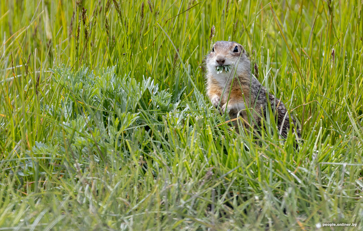 Крапчатый суслик — один из самых редких грызунов Беларуси, которому грозит исчезновение. Май, Несвижский район.