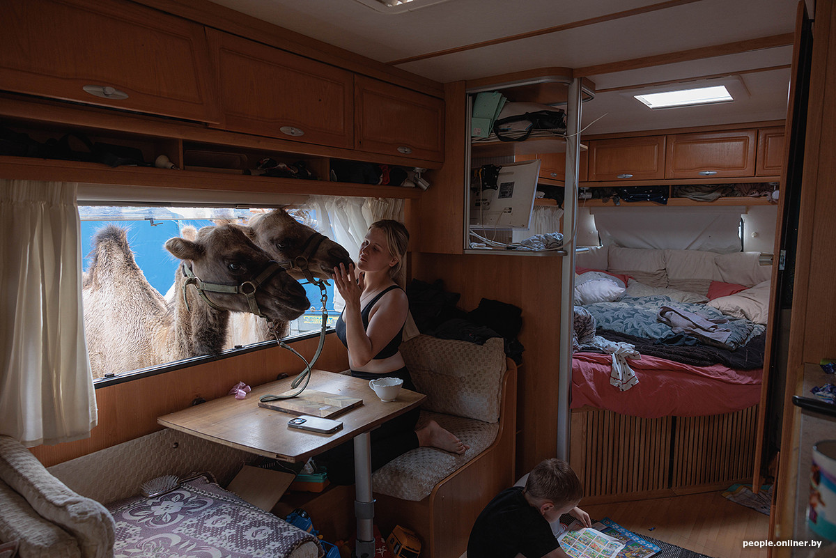 Утро артистки цирка-шапито в доме на колесах. Июль, Минск.