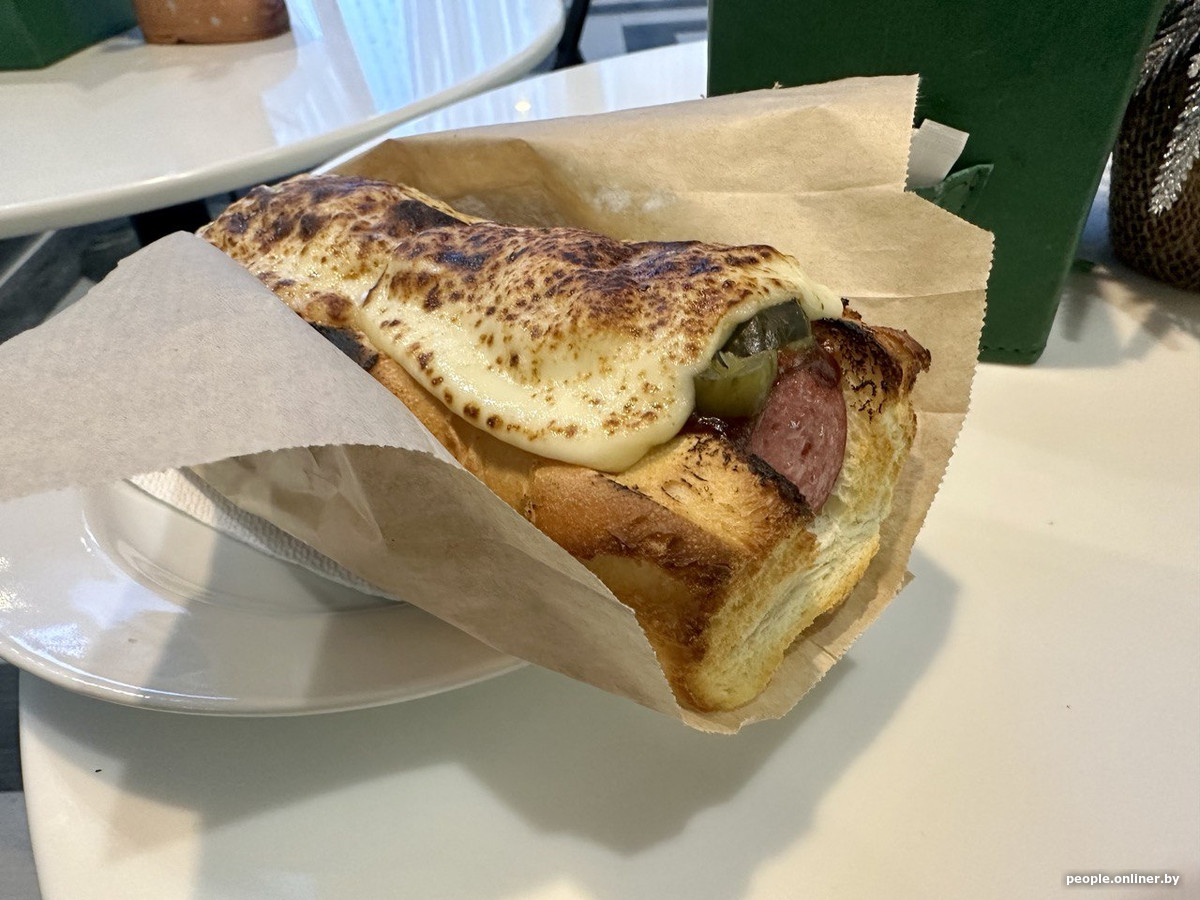 Расплатиться можно картой, наличкой прямо на баре либо «записать» на браслет и рассчитаться на выходе. Я решил перекусить уже после сеанса и на выходе зашел в кафе, где заказал вот такой хот-дог (обошелся он мне в 13 рублей):