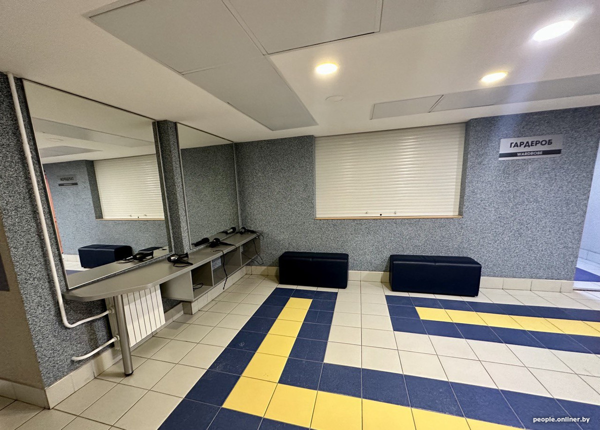 Ему тут предшествует своеобразный предбанник — здесь можно спокойно переодеться, сменить обувь, а уже по завершении сеанса высушить голову феном.