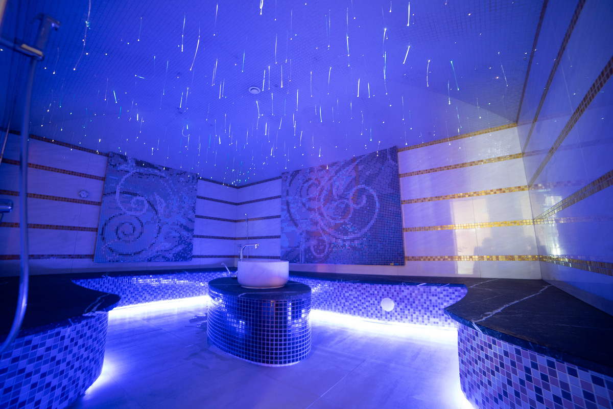 Теперь про хаммам. Нельзя сказать, что он чем-то принципиально отличается от других минских аналогов, но со своей задачей справляется. Явный плюс — просторный зал и несколько смесителей, с помощью которых можно полить скамьи. Так в хаммаме поддерживают необходимую влажность и смывают с лавок пот и конденсат.