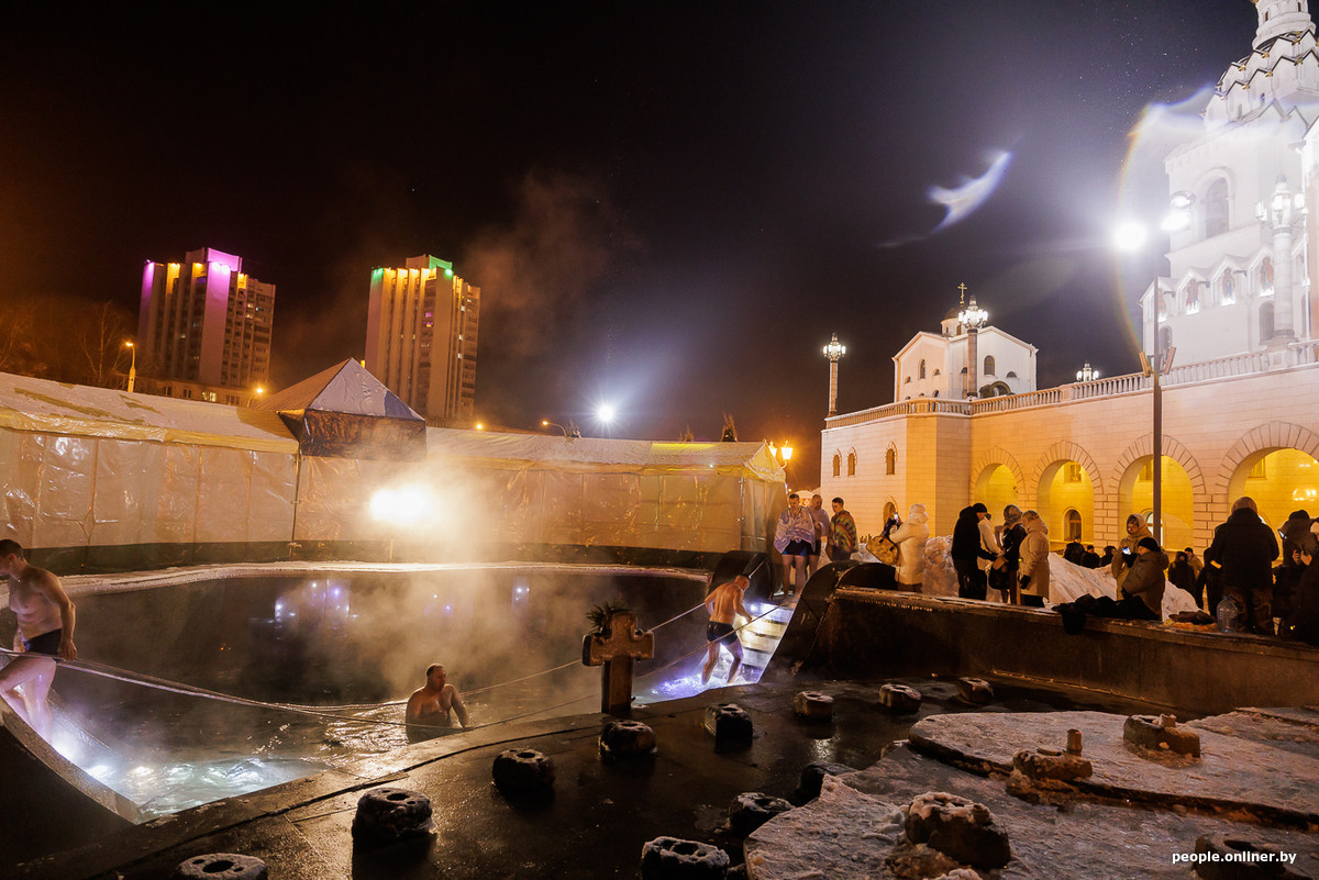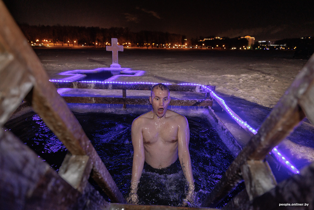 В понедельник православные христиане отмечают Крещение, и уже вечером накануне по традиции сотни белорусов отправились окунаться в купели. Для одних это способ выразить свою веру, для других — хорошая возможность закалиться и испытать свой организм. Фотокорреспондент Onlíner Анна побывала сразу в нескольких локациях и подготовила репортаж о тех, кто не боится минусовых температур и лезет в ледяную воду.