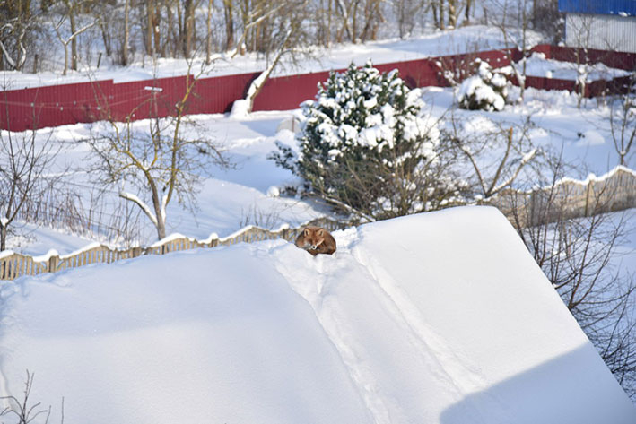Животное заметили морозным зимним днем, когда лиса как ни в чем не бывало спала на крыше хозяйственной постройки рядом с жилым домом.