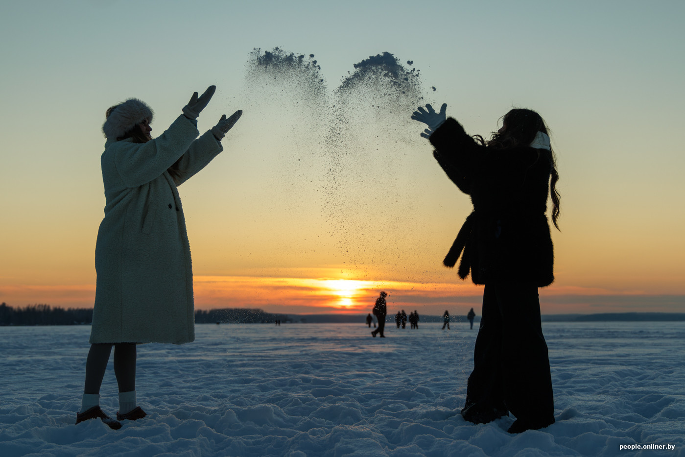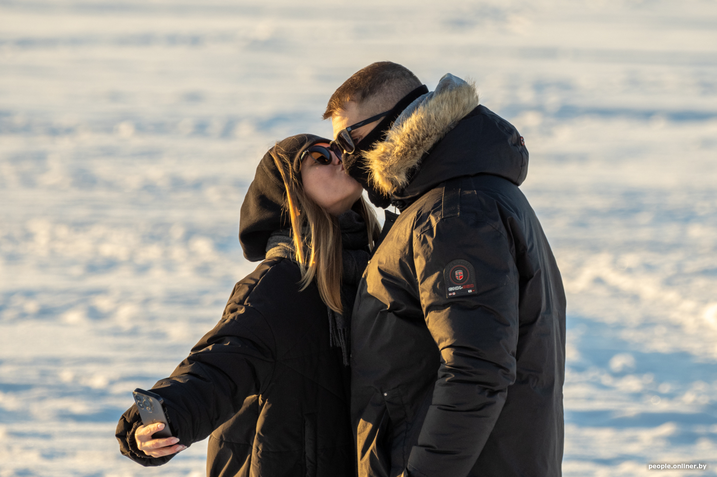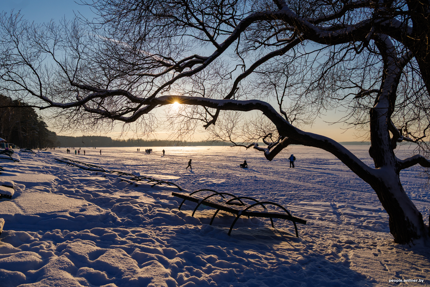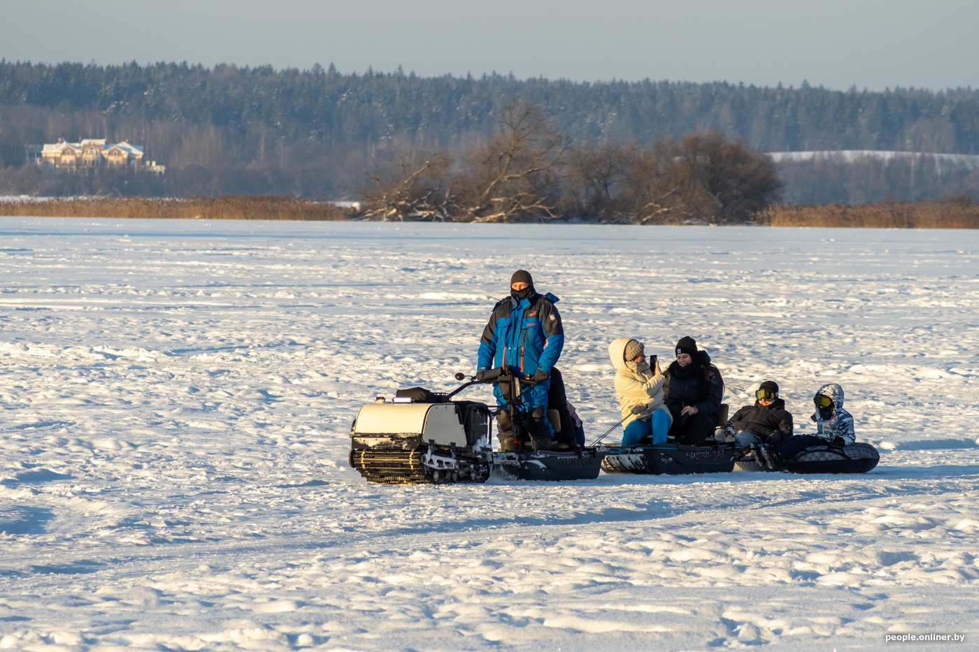 Народ едет за удовольствиями: прогуляться с собакой по заснеженному берегу Минского моря, устроить необычное свидание. Многие приезжают целенаправленно ради фотосессии на закате.