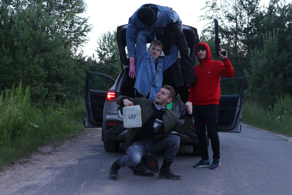 Никита — актер. Илья — тоже, он живет в Речице, но специально приезжает на съемки. Они и в кадре могут в масках побегать, и свет подержать, и, если надо, оборудование потаскать.
