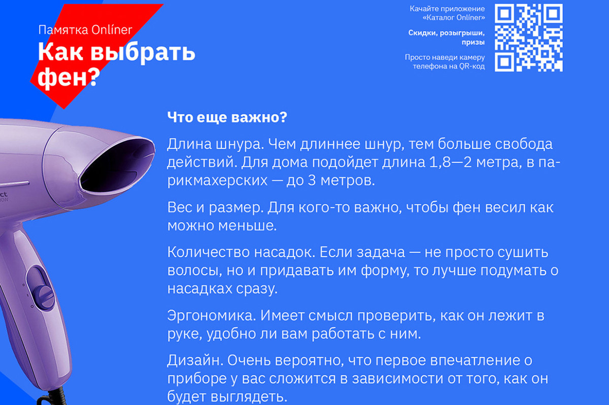 Удобная ручка и продуманное расположение переключателей избавят от лишних усилий. Хорошо, если кнопки переключения скорости и температуры находятся под пальцем и их не нужно искать вслепую. Длина шнура тоже имеет значение — оптимально 2—2,5 метра, чтобы не быть привязанными к розетке у плинтуса.