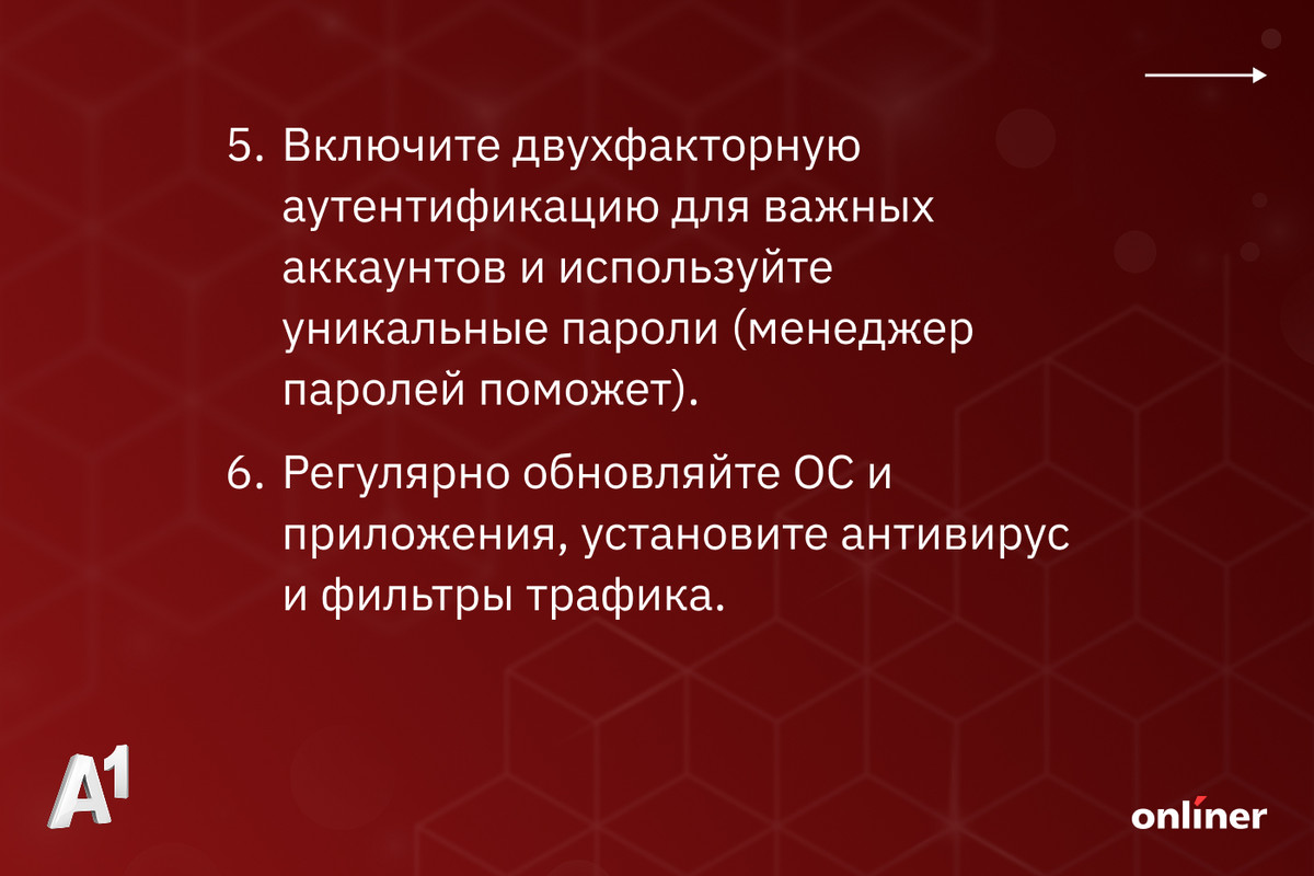 Только за декабрь 2025 года услуга «Безопасный интернет» от A1 заблокировала 2,5 млн угроз. В основном это фишинговые страницы, маскирующиеся под банки и службы доставки. Главный плюс сервиса — он работает автоматически на уровне сети. Не нужно устанавливать приложения: система сама распознает опасность и блокирует переход по вредоносной ссылке, защищая ваши данные и деньги. Цена цифровой безопасности — 2,9 рубля в месяц.
