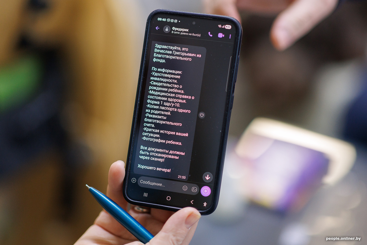 — Он сказал, что им нужна история Бори и документы, подтверждающие диагноз, — вспоминает Роман. — Самое интересное, что, когда я получил сообщение в Viber от Лысенкова и решил сохранить контакт, он неожиданно добавился как «Фредерик». То есть он сам у себя так подписан в мессенджере (на части скриншотов с перепиской действительно отображается «Фредерик», номер совпадает с номером Вячеслава Лысенкова. — Прим. Onlíner).