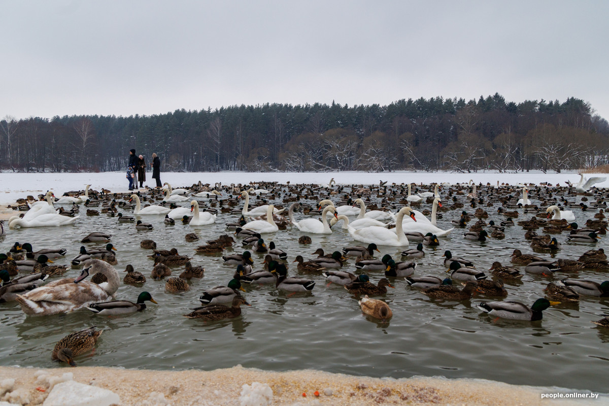 Руслан вспоминает, что раньше доходило до анекдотичных ситуаций, когда после Нового года на берега водоемов и лед минчане вываливали салаты и прочую еду с праздничного стола. Со временем ситуация изменилась и люди стали кормить пернатых правильно, но напомнить все равно не помешает: