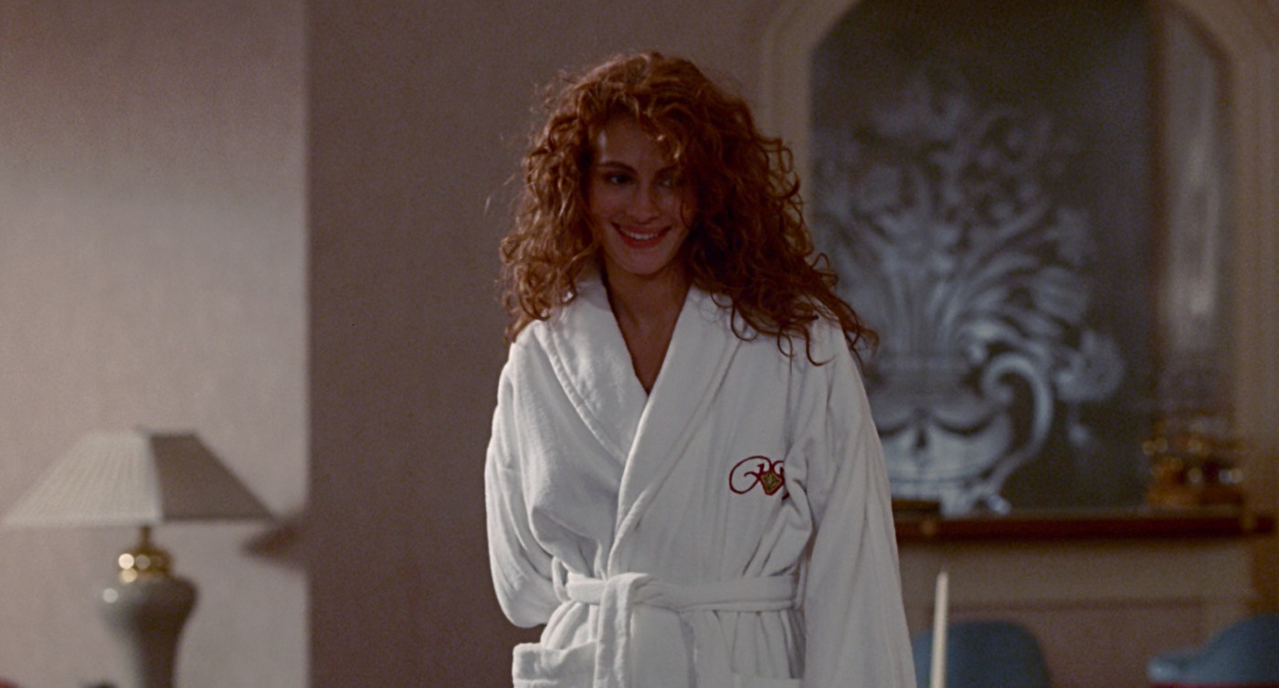 Что до упрощенности, то как раз при каждом пересмотре фильм становится сложнее. После первого раза для меня все тоже выглядело чистой сказкой: принц влюбился в девочку из низов, и жили они долго и счастливо. Так, мне кажется, видит эту историю большинство зрителей. Потом начинаешь замечать больше вот этих акцентов на главной героине как на товаре. В первой же сцене Джулию Робертс показывают максимально «сочно» — будто она какой-нибудь бургер, новый «айфон» или какая-нибудь вещь из рекламы. К тому же она там дома, а не на «рабочем месте», чтобы ничего не отталкивало.