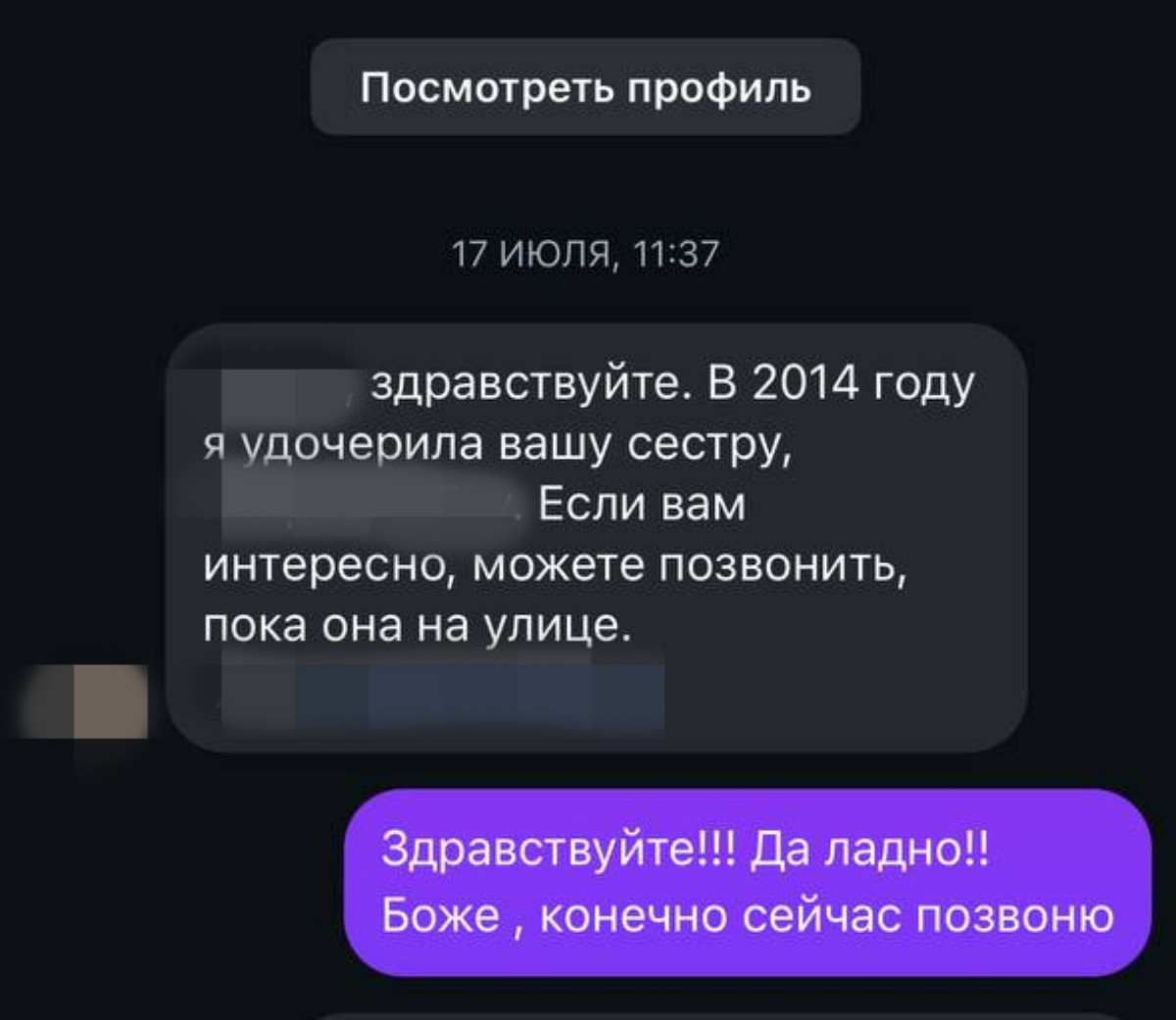 Три года назад Вера вышла замуж, родила двоих детей с разницей в год. Минувшим летом ей пришло сообщение, что у нее есть возможность больше узнать об удочеренной 12 лет назад родной сестре. Вера признается, что в тот момент расплакалась.
