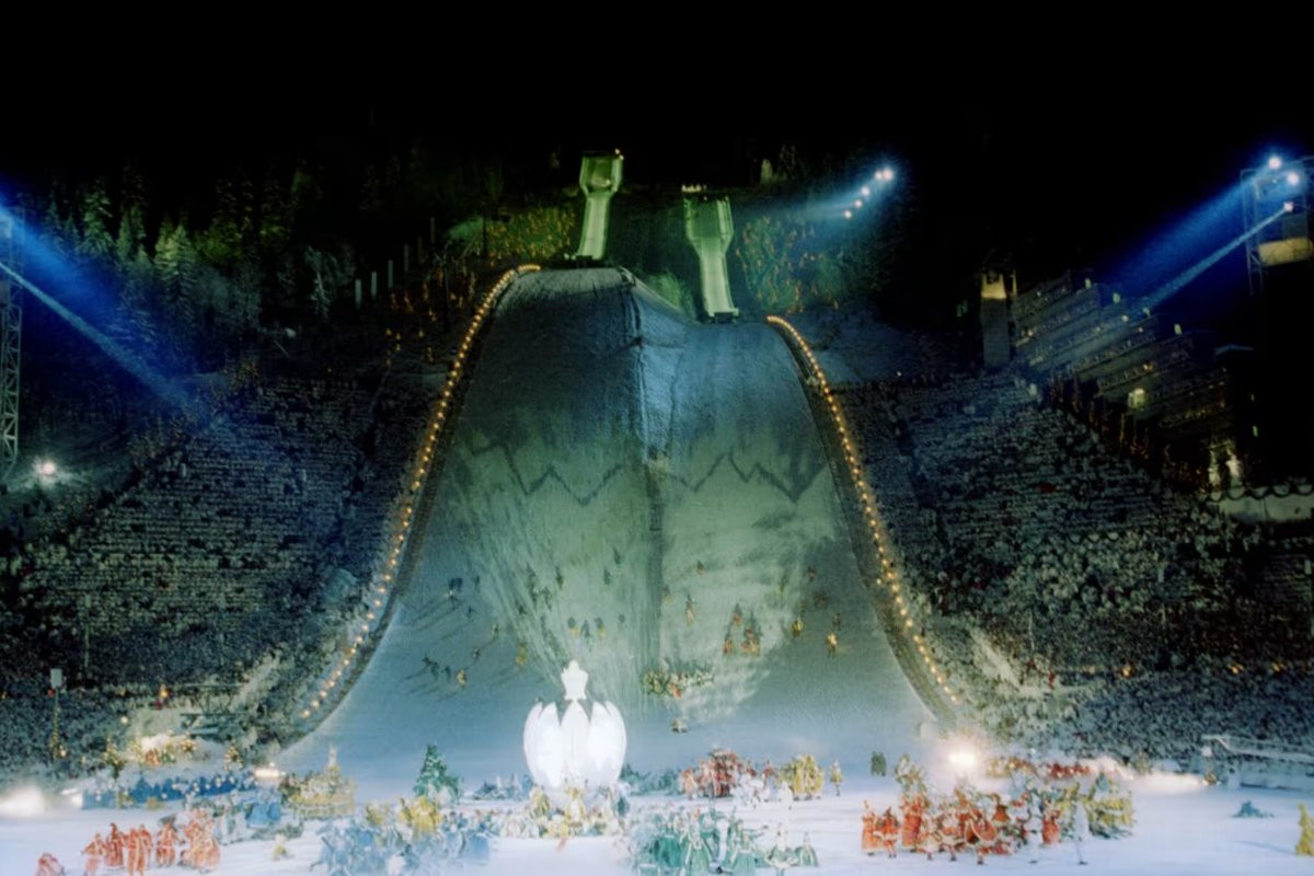 Ну а завершилось все очень необычно: олимпийский огонь на стадион доставил, прыгнув с факелом с трамплина, Стейн Грубен, а саму чашу зажег наследный принц Норвегии Хокон.
