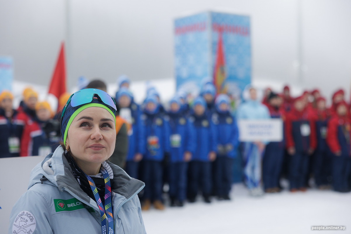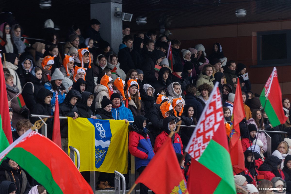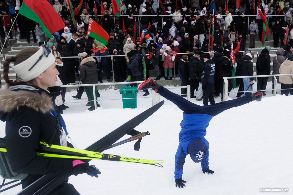 Ну и не обошлось без Дарьи Домрачевой, которая болела, подбадривала и помогала Ксении, выступающей за команду Минска, подготовиться к спринтерской гонке.