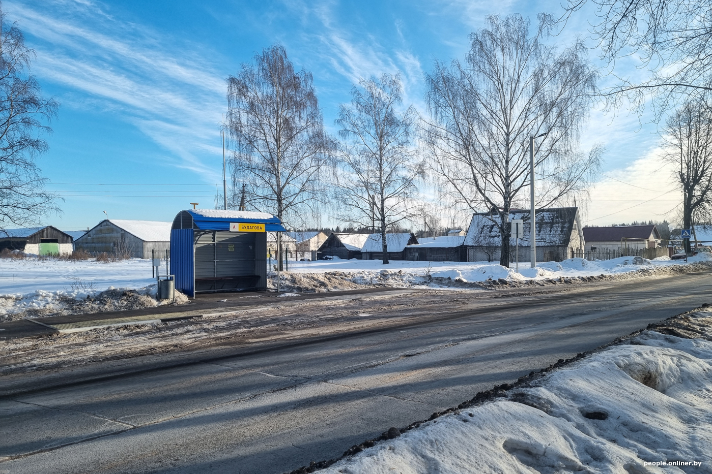 Спустя сутки после резонансного налета Будагово как будто живет в привычном ритме. Улицы окутаны морозной дымкой — на градуснике минус двадцать, поэтому прохожих почти нет. Местная жительница Алеся пришла на почту отправить посылку. Само отделение с ярко-синей вывеской делит здание Дома культуры с продуктовым магазином. Это, считайте, центр местной жизни, и новость о нападении здесь — тема номер один.