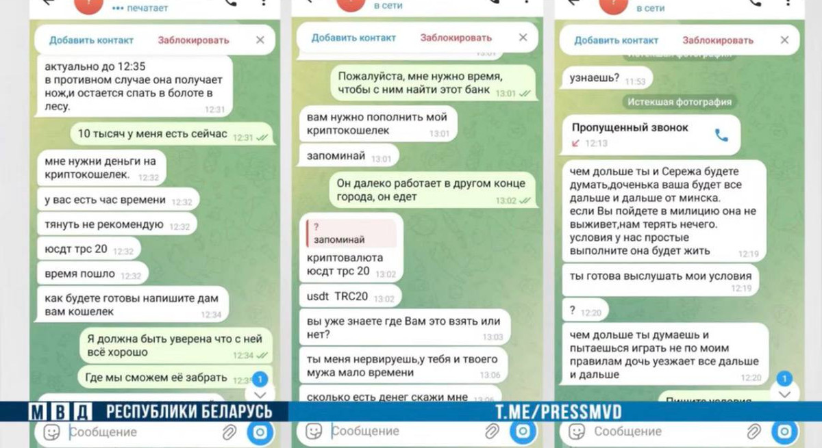 Взволнованная минчанка обратилась в милицию: женщина сообщила о похищении дочери и требовании выкупа. В итоге девочку быстро нашли — выяснилось, что она сама уехала за город и отключила телефон. Подросток рассказала, что таким было задание от кураторов — в случае отказа родителей грозили отправить в тюрьму, а ее саму — в детский дом.