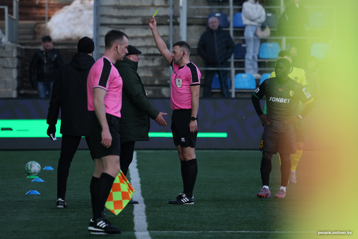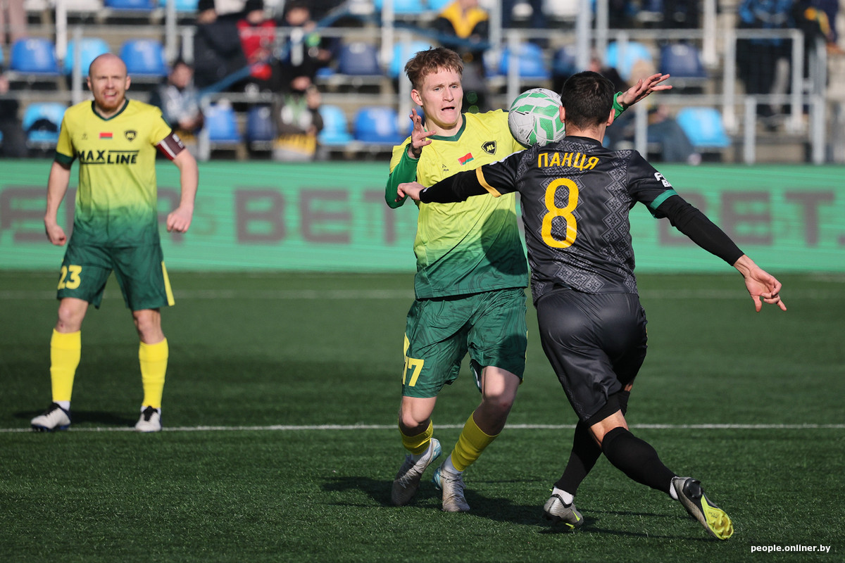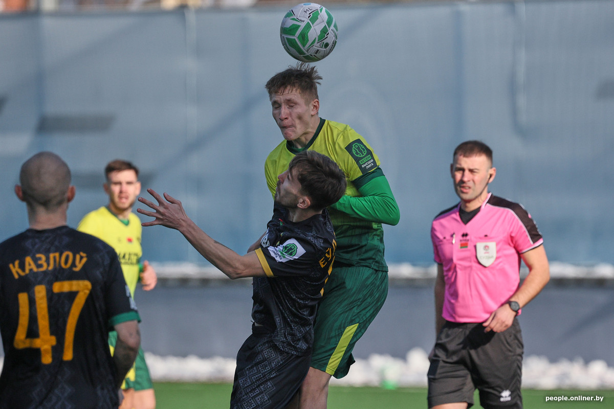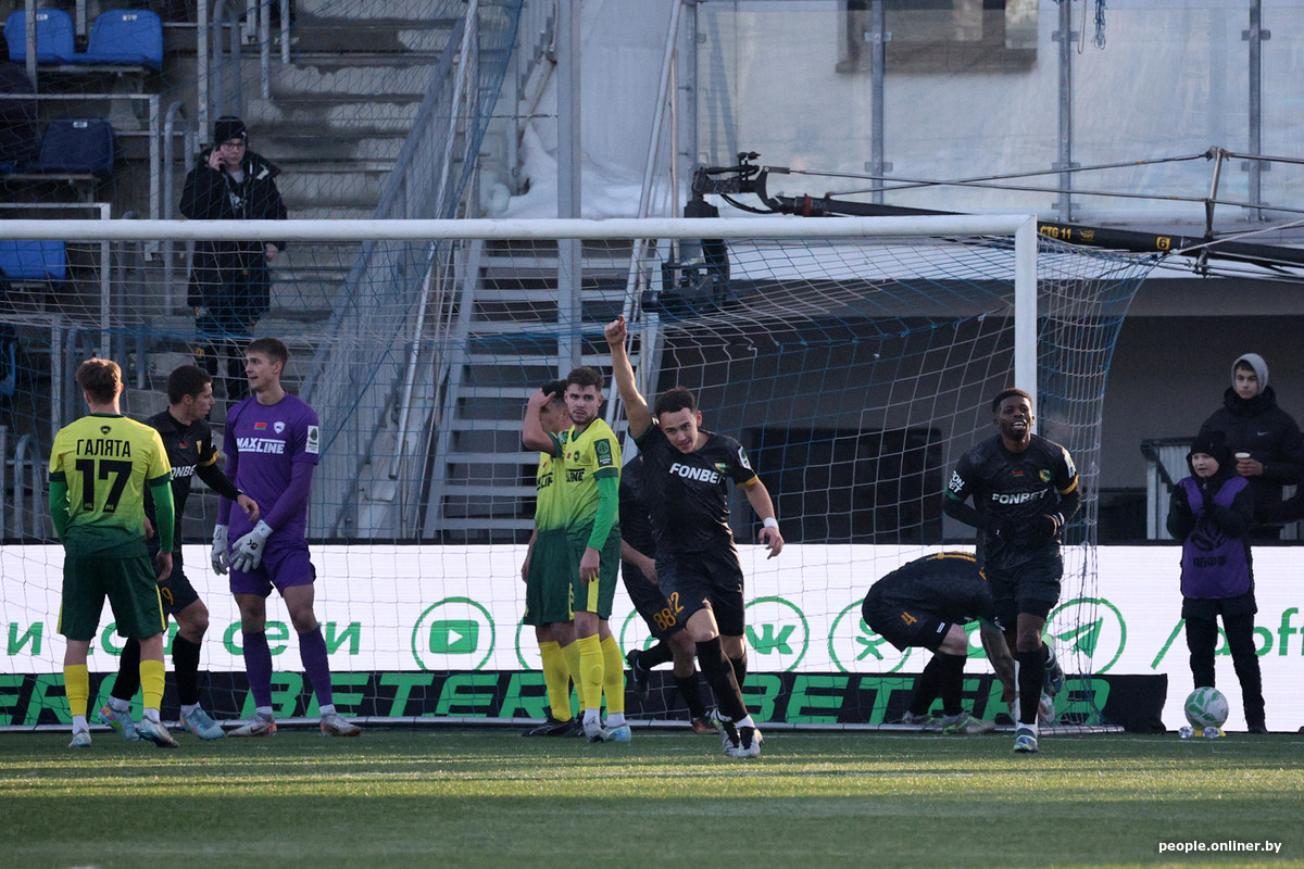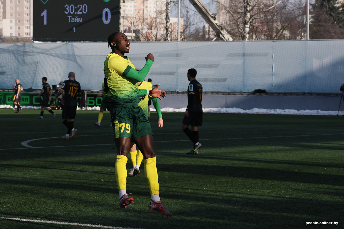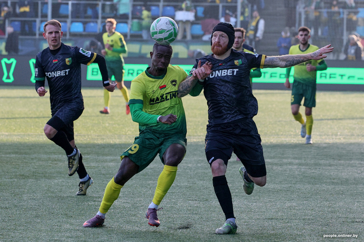 Первый тайм полностью был за «МЛ»: за пару минут дважды отличился новичок команды, нападающий Бассеку Диабате, приехавший играть в Беларусь из Норвегии.