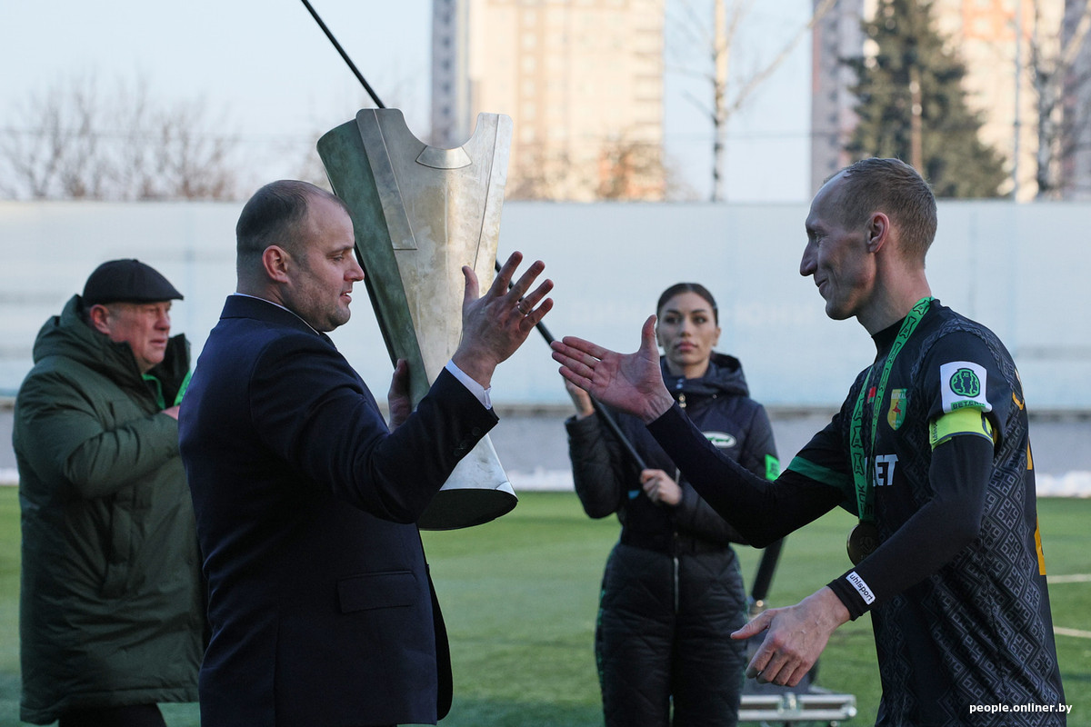 В итоге разборка перешла в серию пенальти, и тут уже «Неман» своего не отдал — 5:4. Решающий мяч забил 38-летний ветеран команды Иван Садовничий.