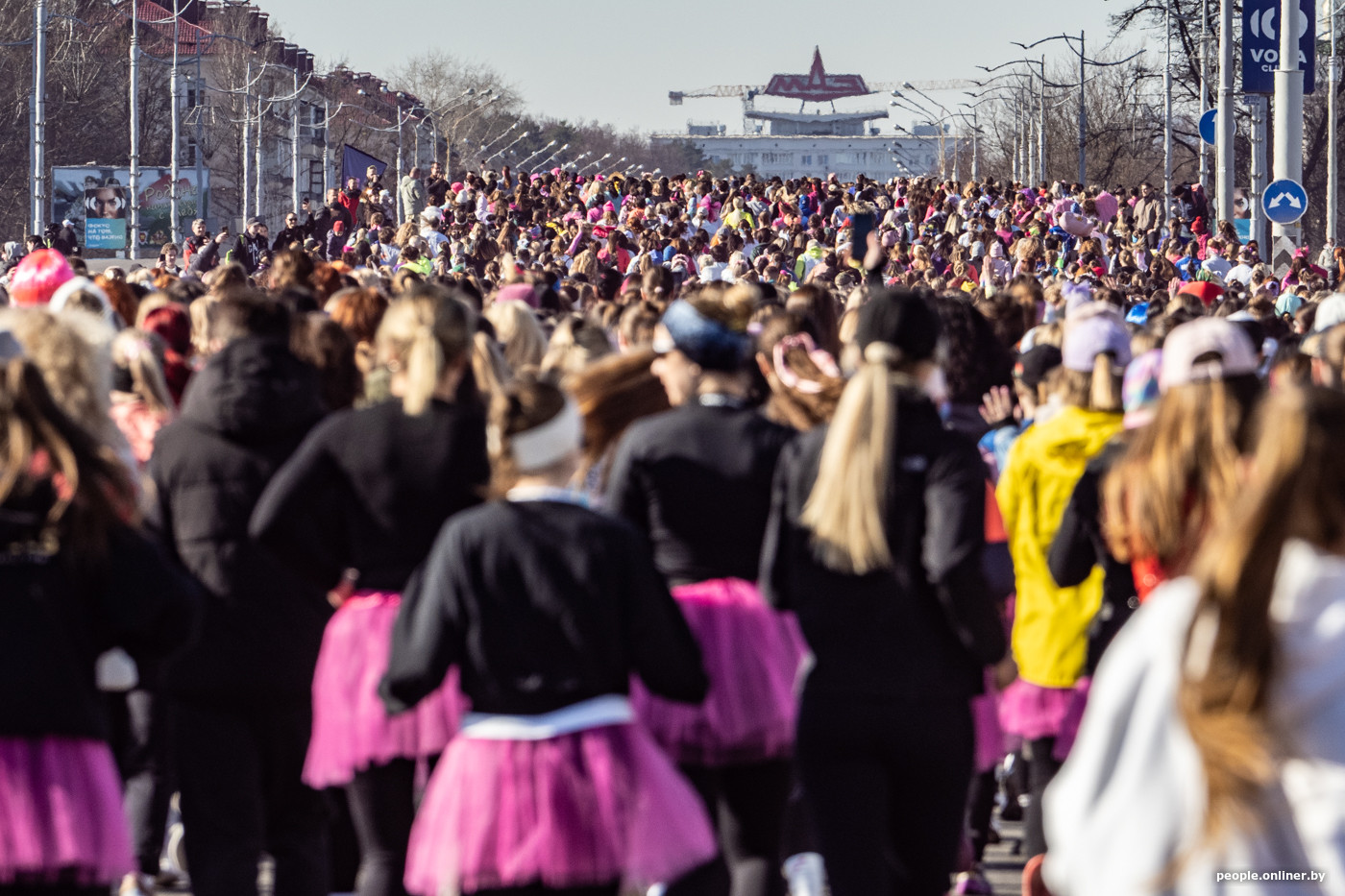 Главной особенностью забега стали розовые фатиновые юбки, которые участницы получили вместе со стартовыми номерами. Площадь у Национальной библиотеки перед началом забега превратилась в яркое облако розового цвета — девушки фотографировались, делились праздничным настроением и готовились к старту.