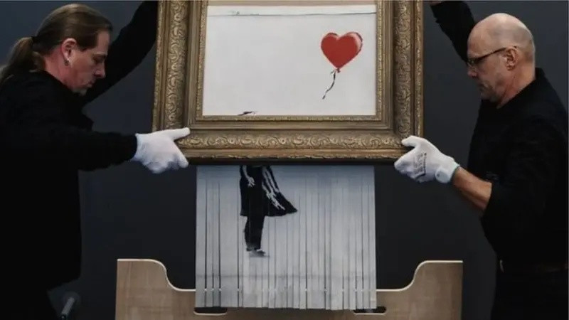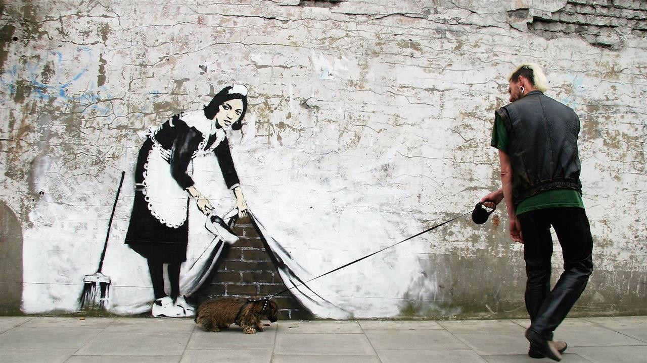 Бэнкси — культовый андеграундный художник стрит-арта из Англии. Он известен своим провокационным творчеством с использованием техники трафарета. Обычно он создает сатирические и глубоко политизированные произведения, критикующие войну, капитализм, потребительство и социальное неравенство. Его работы мгновенно становятся вирусными. Один из самых ярких перформансов художника — публичное уничтожение своей картины прямо на аукционе с помощью встроенного шредера.