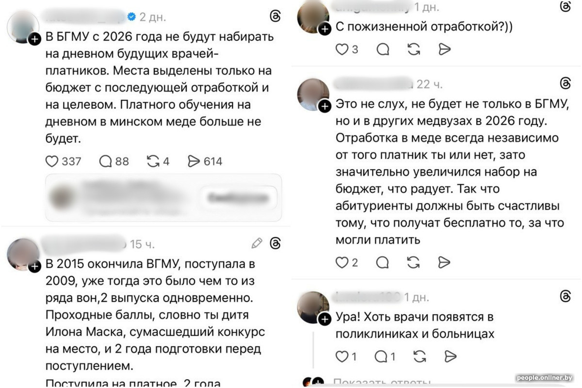 Автор ветки в Threads, собравшей более 80 тыс. просмотров, обратил внимание на отсутствие платных мест на дневной форме обучения в БГМУ, но, согласно предварительным цифрам, платного набора не будет и в других профильных вузах, а они, напомним, есть еще в Витебске, Гомеле и Гродно.