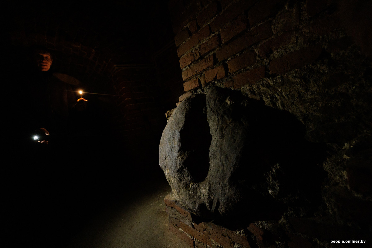 — Мы прошли с вами 50 метров от входа — и это самые большие по площади из доступных храмовых подземелий Беларуси. Возможно, есть похожие в Гродно, но они, кажется, опечатаны, — говорит Юрий, пока мы пробираемся вдоль каменных стен. — Хотите узнать, что будет с нашим телом через 200 лет? Загляните.