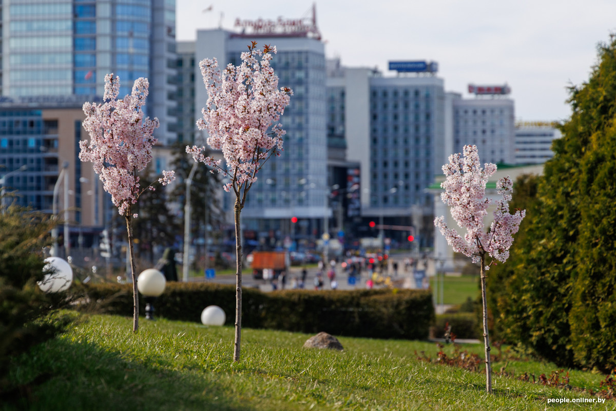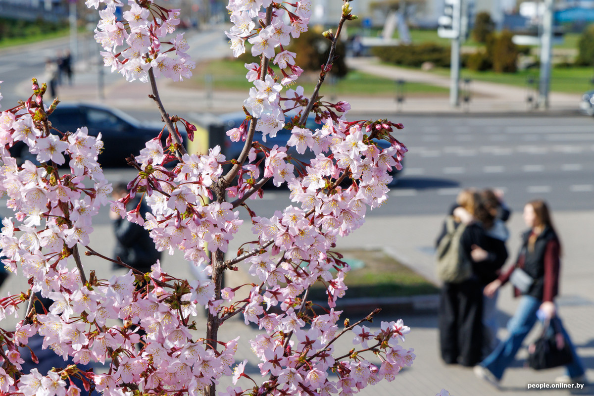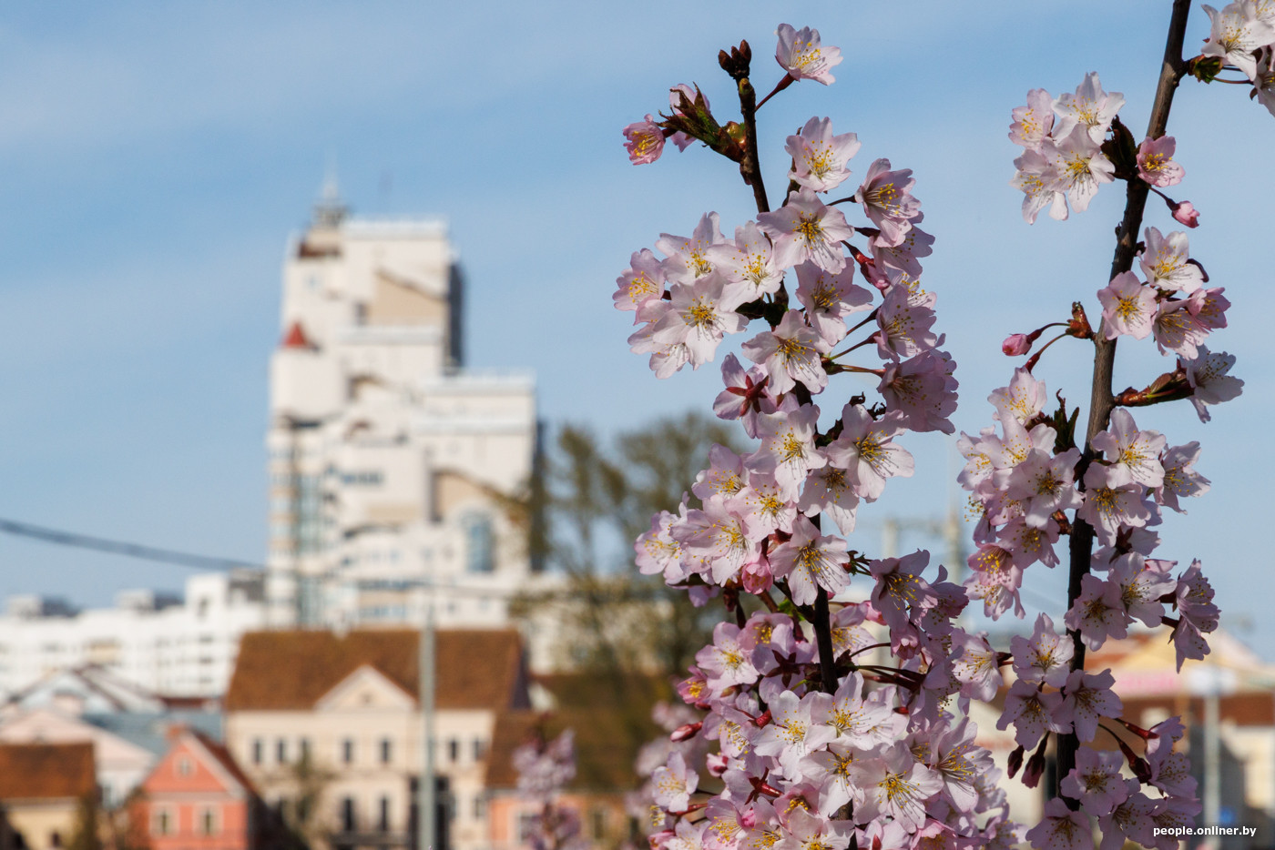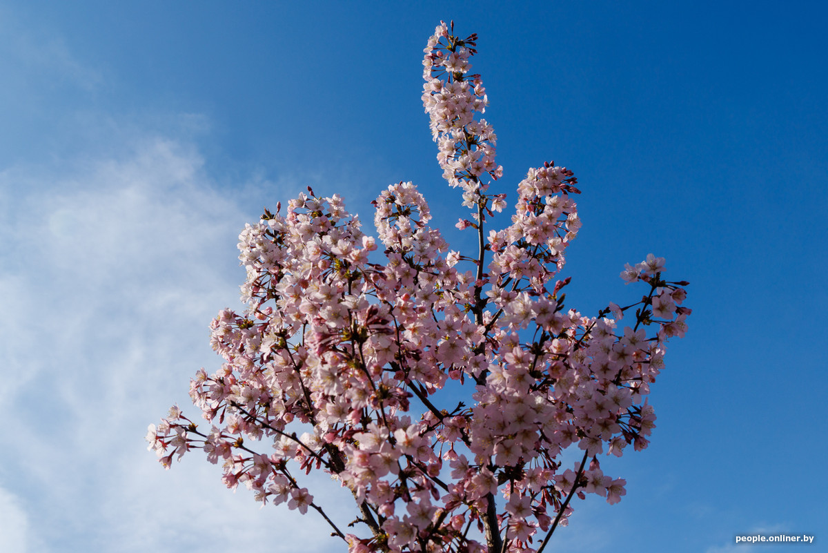 Благодаря теплой погоде уже в середине апреля в Беларуси зацвела сакура. Цветы могут распускаться в разный момент в течение месяца — вплоть до начала мая. А сам период цветения обычно занимает 7—10 дней. Поэтому если хотите предаться ханами — так в Японии называют процесс любования сакурой, — стоит запланировать это на ближайшие дни. Наш фотограф Александр Ружечка уже вышел на улицы города в поиска красоты — делимся.