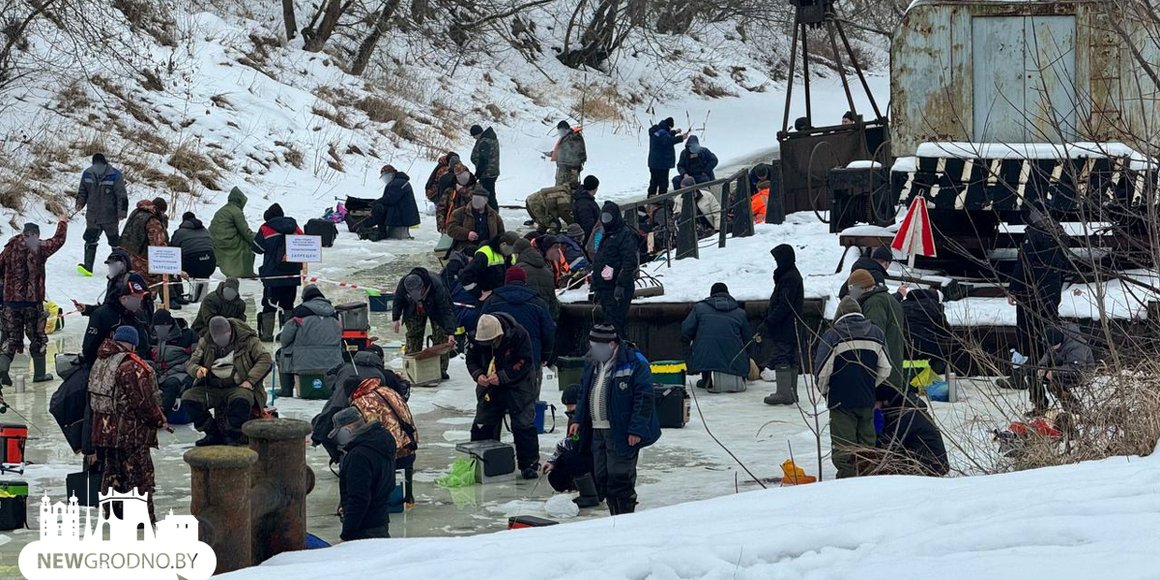 Необычную картину вчера заметили в Гродно: десятки человек собрались на льду небольшой затоки Немана. Одна из версий, что могло так привлечь собравшихся, — возможность хорошего улова.