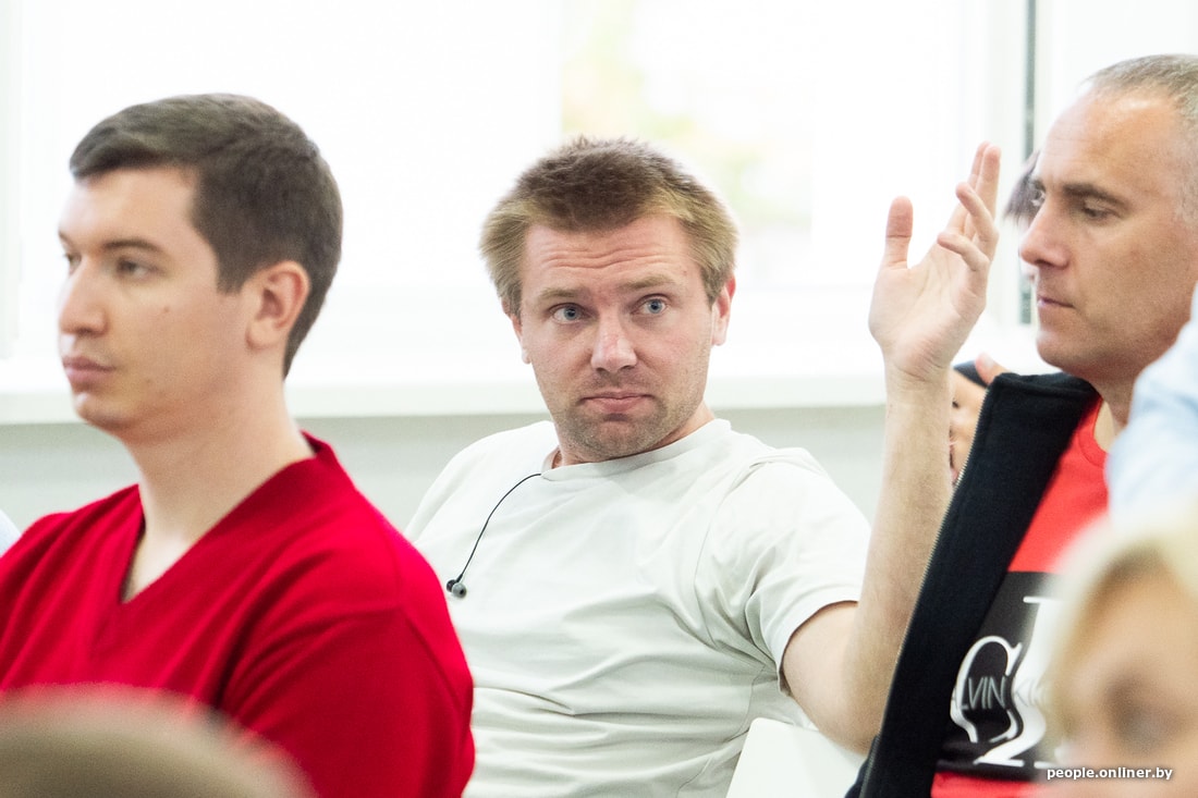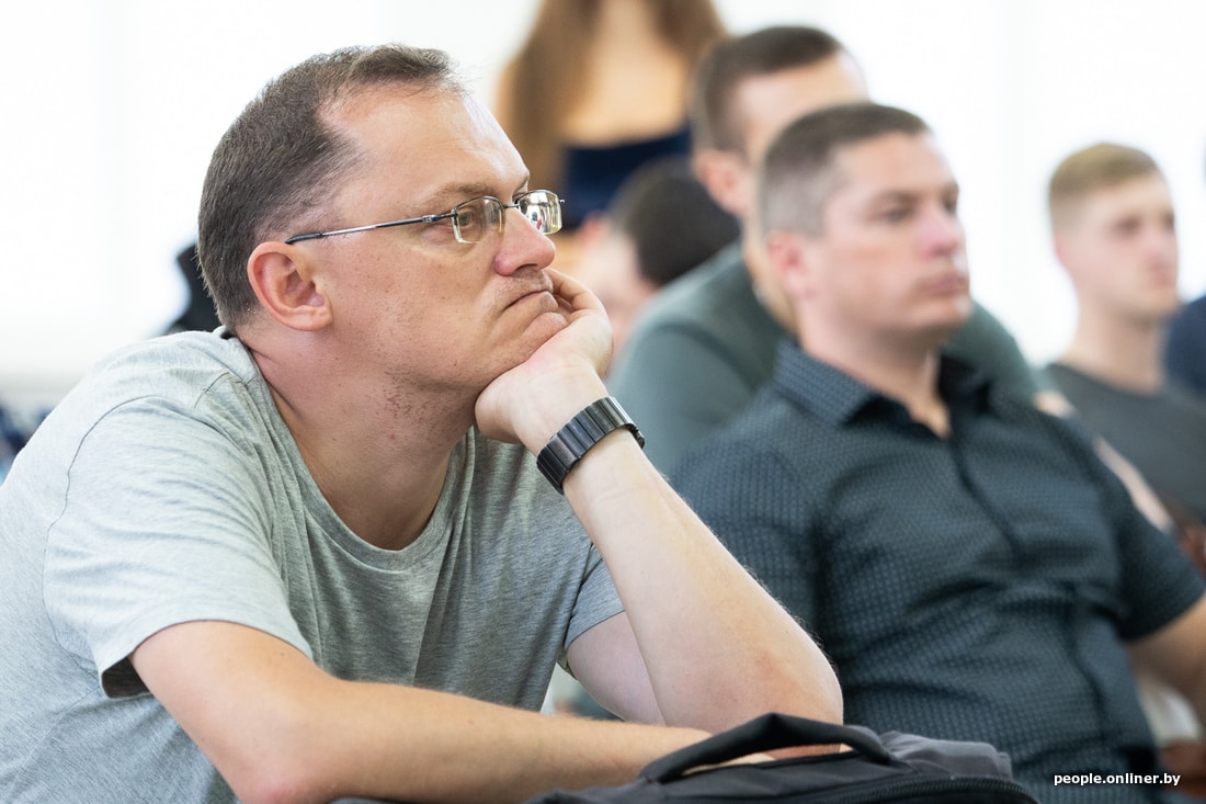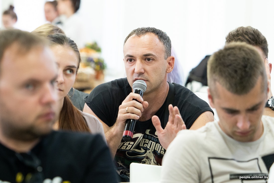 Вместе с нашими партнерами из A1, которые выступили традиционными соорганизаторами встречи, мы пригласили на сцену в качестве гостей директора компании «Колобайк» (той самой, чьи желтые арендные велосипеды буквально наводнили Минск в этом году) Вадима Осипчика и председателя правления Минского велосипедного общества Павла Горбунова.