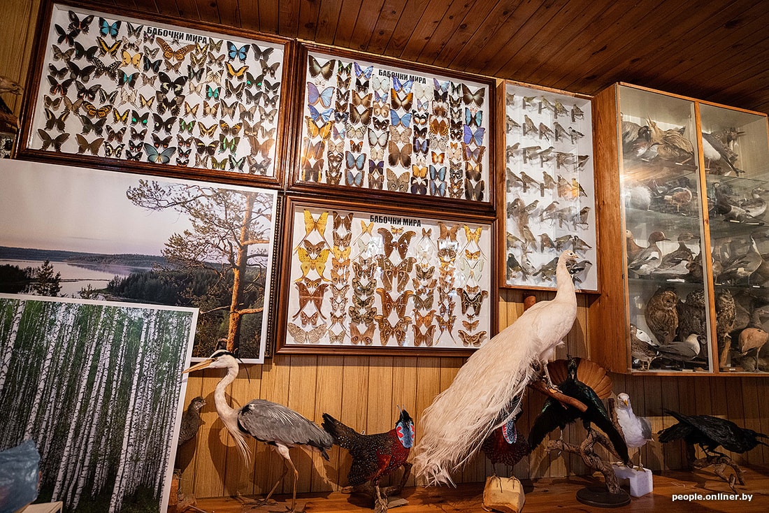 — Со временем меня начали просить что-то сделать — трофей для охотника или для музея что-то. В итоге увлечение превратилось в работу, в основной источник заработка. Краеведческий музей Беловежской пущи, Березинский заповедник, два музея Припятского заповедника на 95% оформлены моими работами. Всего вместе с женой и сыном мы сделали больше 10 тысяч чучел, все записаны в тетрадках, — ведет нас по дому хозяин.