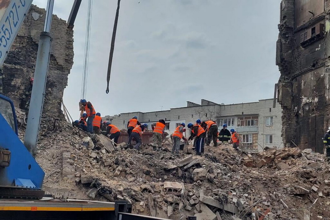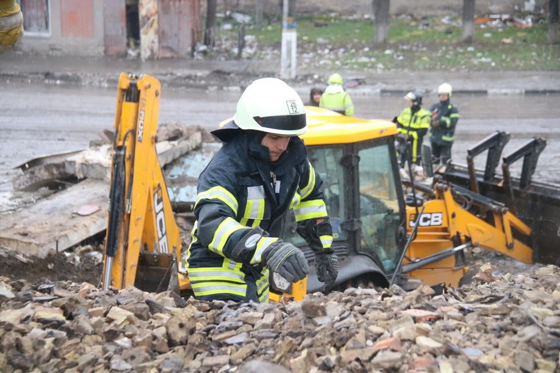 Государственная служба по чрезвычайным ситуациям публикует фотоотчеты о своей работе. Спасатели вместе с добровольцами разбирают завалы и обезвреживают боеприпасы.